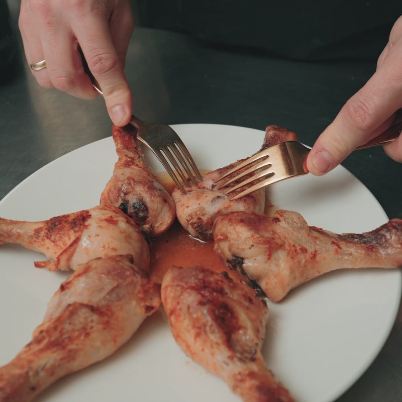 Læg lårene i airfryerens kurv med lidt afstand imellem. Steg ved 180 °C i 25–28 minutter og vend dem halvvejs.