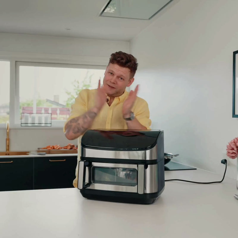 Med Dual Zone-funktionen kan du indstille hver kurv individuelt med forskellig temperatur og tid. Det giver dig frihed til at lave sprøde pommes frites i den ene kurv og saftig kylling i den anden – uden at gå på kompromis med resultatet.