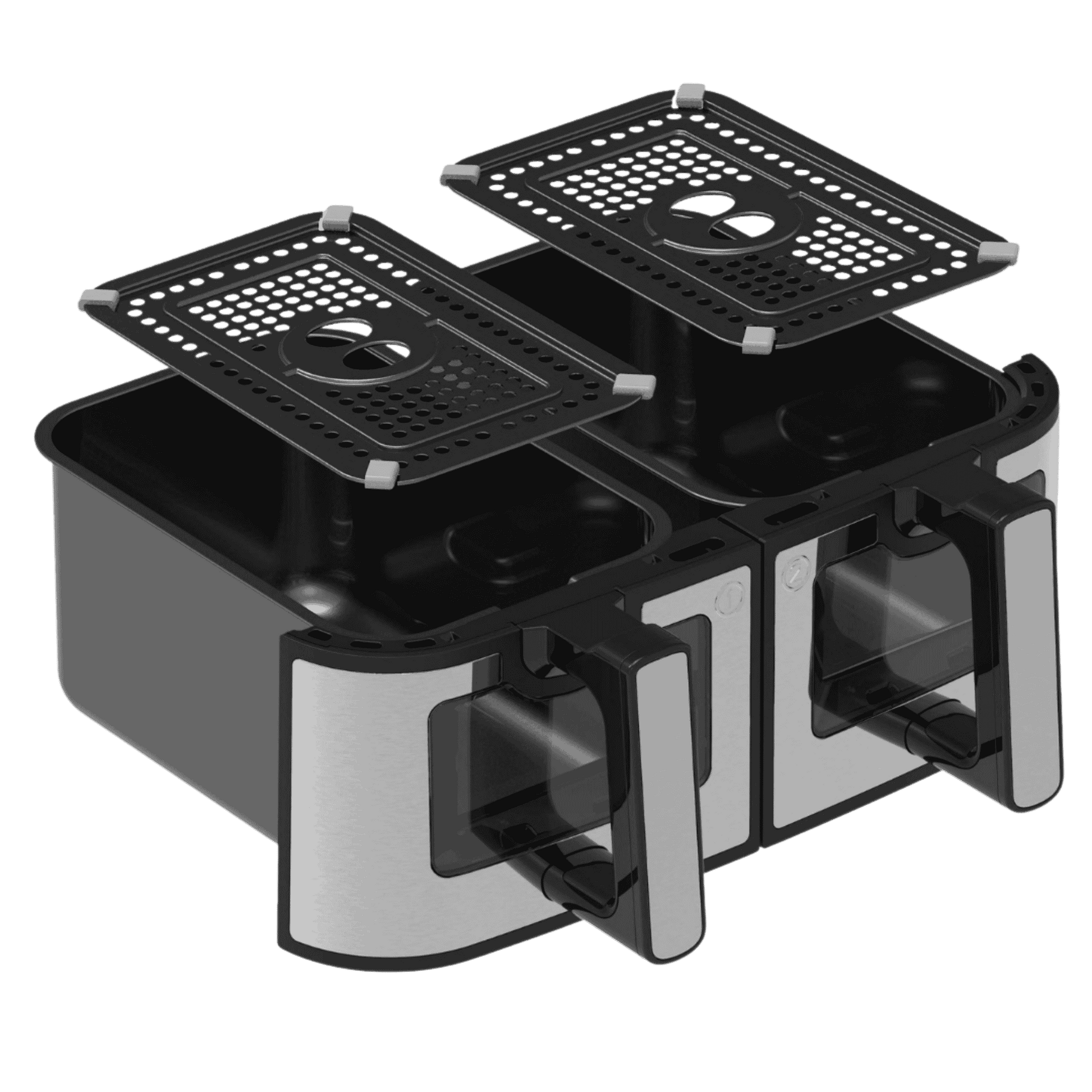 Bundlet inkluderer både skuffe 1 (venstre) og skuffe 2 (højre), så du har et komplet sæt, der passer perfekt til din DualFry Fusion Airfryer 10,5L.