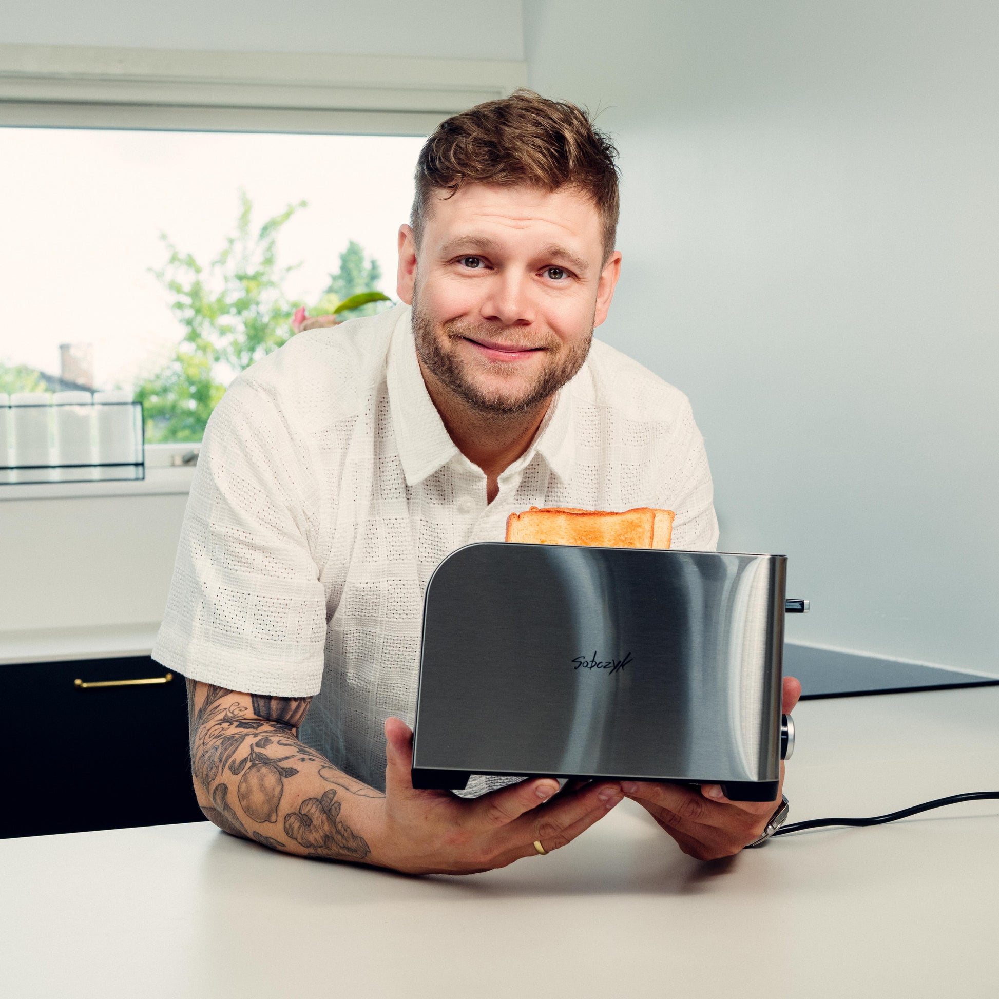 Designet er nordisk inspireret med et slankt udtryk, der passer ind i ethvert køkken. De brede og dybe riller gør det muligt at riste både almindelige og tykke skiver, og den høje løftearm gør det nemt og sikkert at tage selv små stykker brød op.