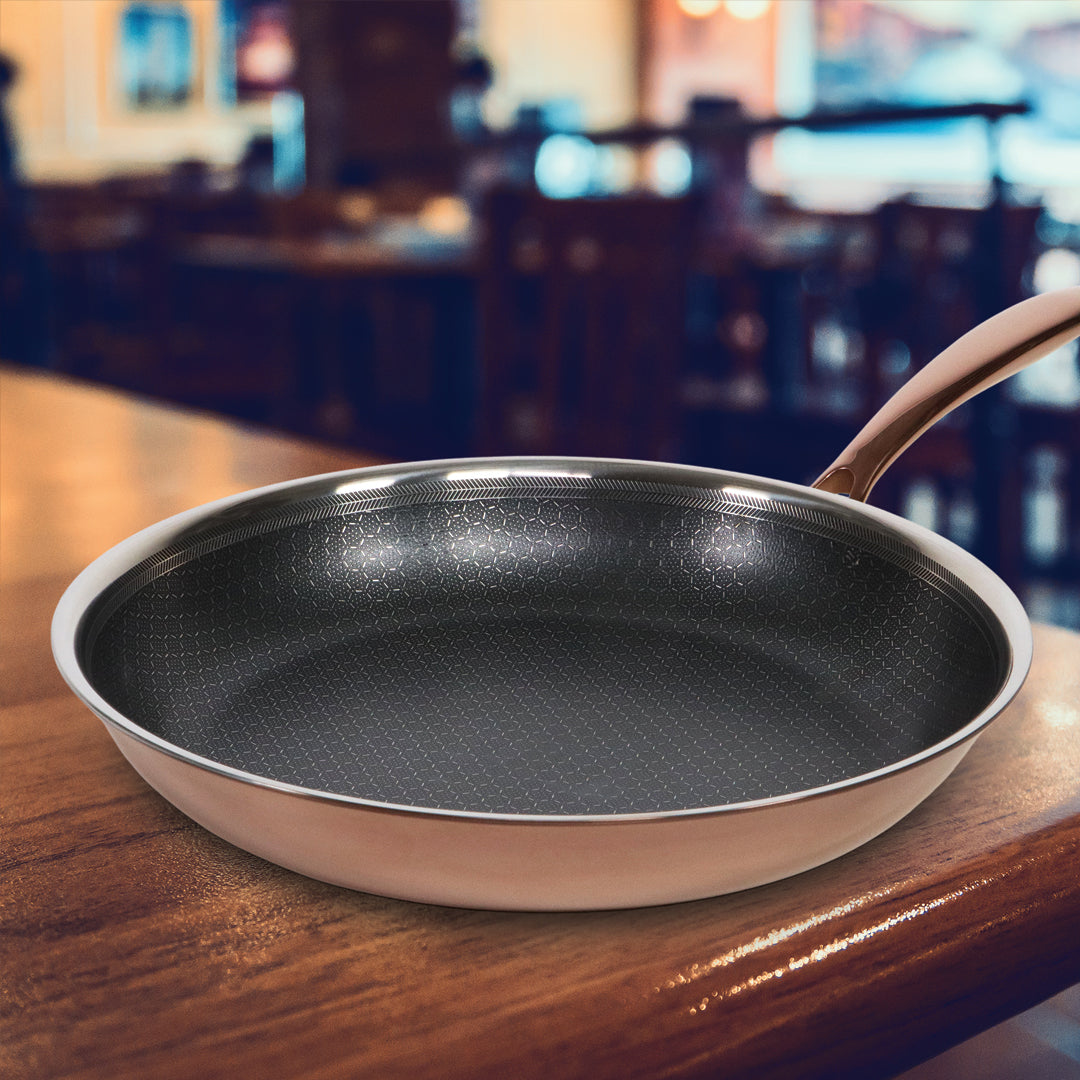 Hybrid Rose Gold Stegepande på 28 cm er en limited edition, jeg er særligt stolt af. Her får du en pande, der ikke kun leverer perfekt ydeevne i køkkenet, men som også bringer et unikt og stilfuldt udtryk ind på komfuret. Den smukke rose gold farve gør panden til noget helt særligt.