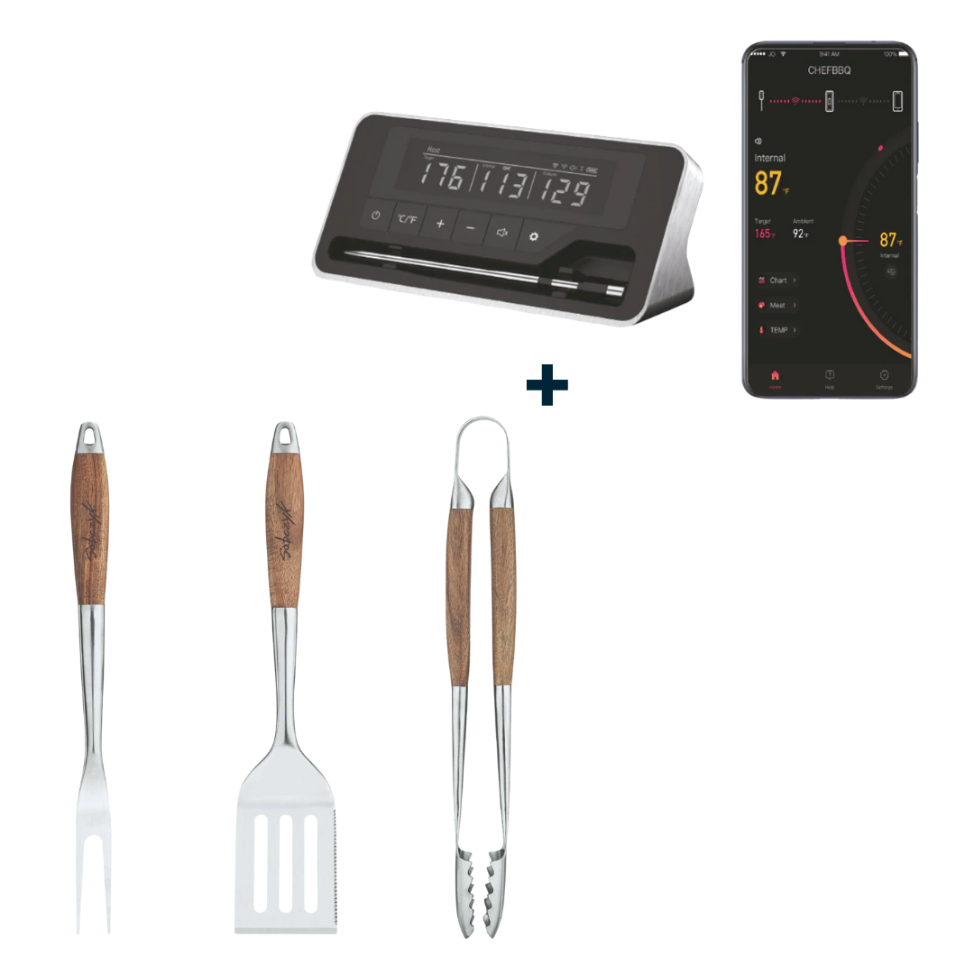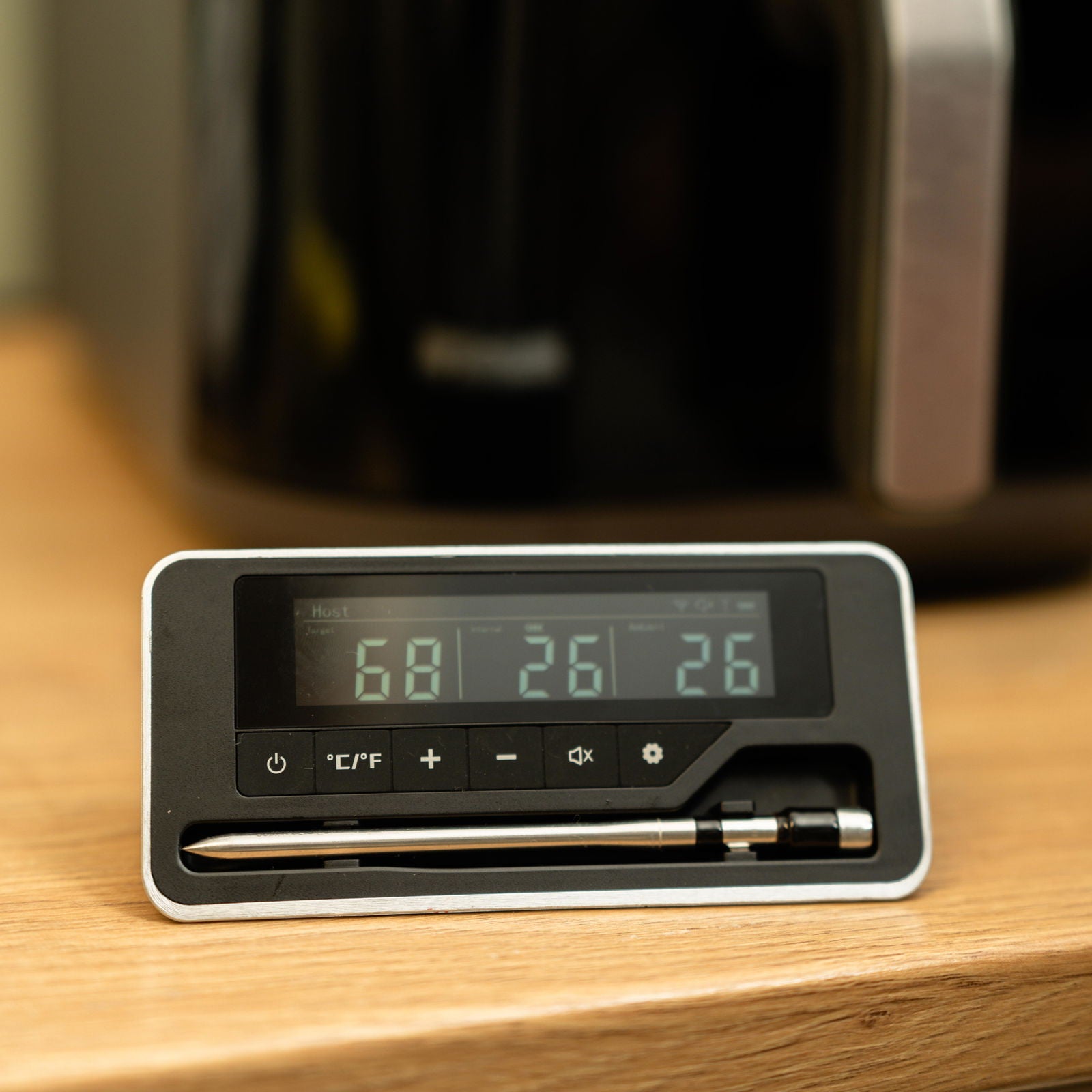 Stegetermometeret måler temperaturen nøjagtigt og sender resultatet direkte til din telefon via Bluetooth. Det betyder, at du kan følge tilberedningen uden at løfte låget på grillen, og du får perfekte resultater hver eneste gang.