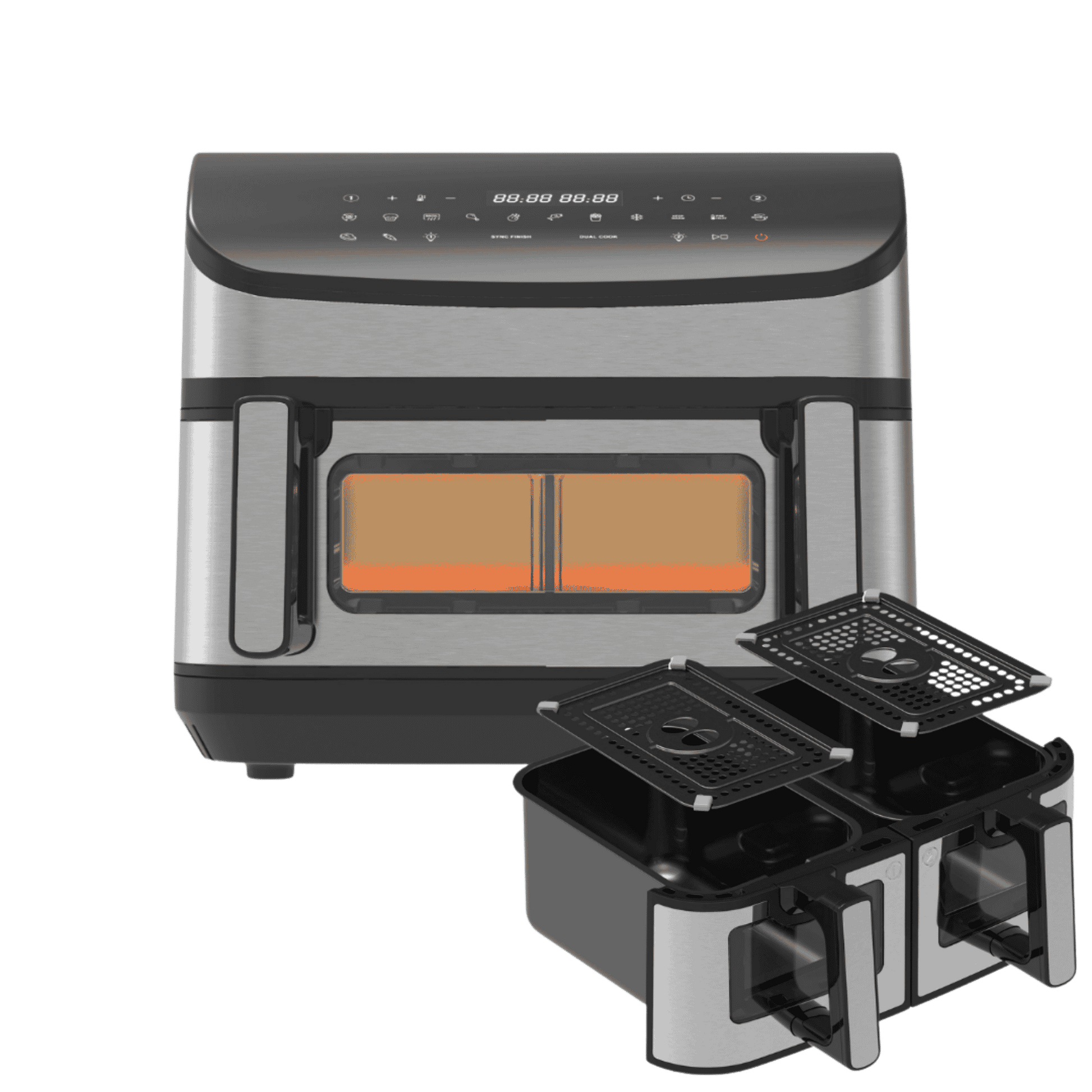 Dual Zone-funktionen betyder, at du kan indstille hver skuffe individuelt med forskellig temperatur og tid. Det er ideelt, når du vil lave flere retter samtidigt uden at gå på kompromis med kvaliteten.