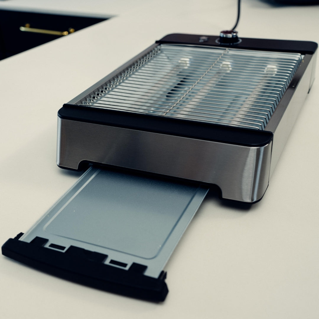 Designet er nordisk inspireret med en robust, mat overflade, der passer ind både i moderne køkkener og på det hyggelige morgenbord. Den brede flade sikrer, at brød af forskellige størrelser og tykkelser varmes jævnt og ensartet.