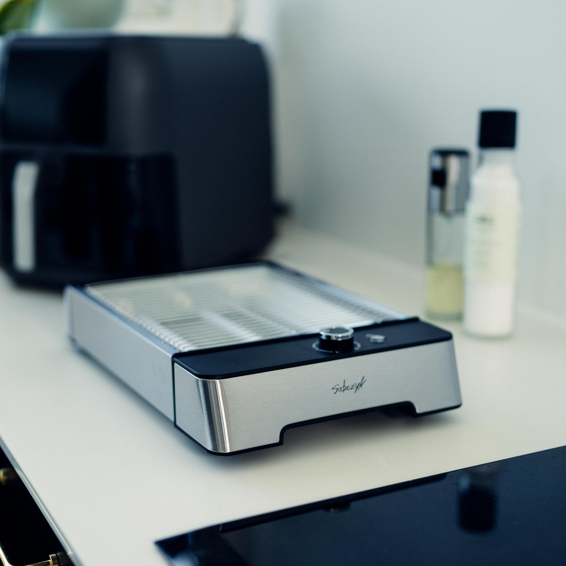 Denne flade brødrister kombinerer et tidløst design med præcis kontrol over ristningen. Med den brede risteflade kan du tilberede alt fra rundstykker og toast til groft rugbrød, så du altid får sprøde, gyldne skiver præcis som du ønsker det.