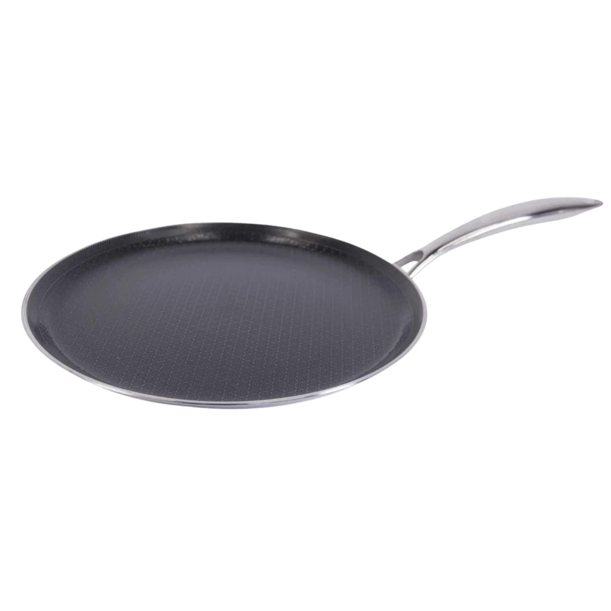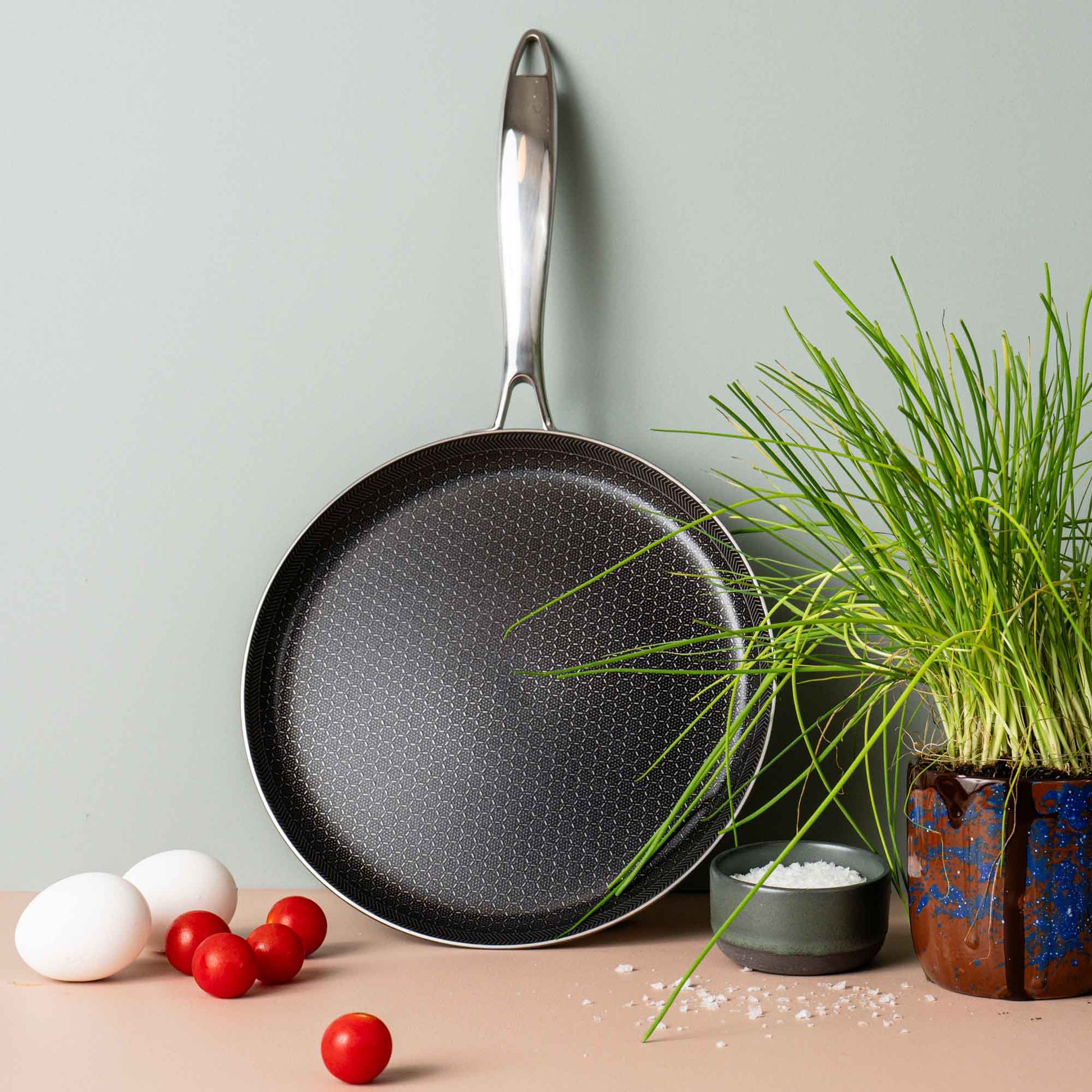 Konstruktionen i tre lag stål giver dig en pande, der kan bruges på alle kogeplader og endda i ovnen op til 265 grader. En holdbar og alsidig pande, der hurtigt bliver en af de mest brugte i dit køkken.