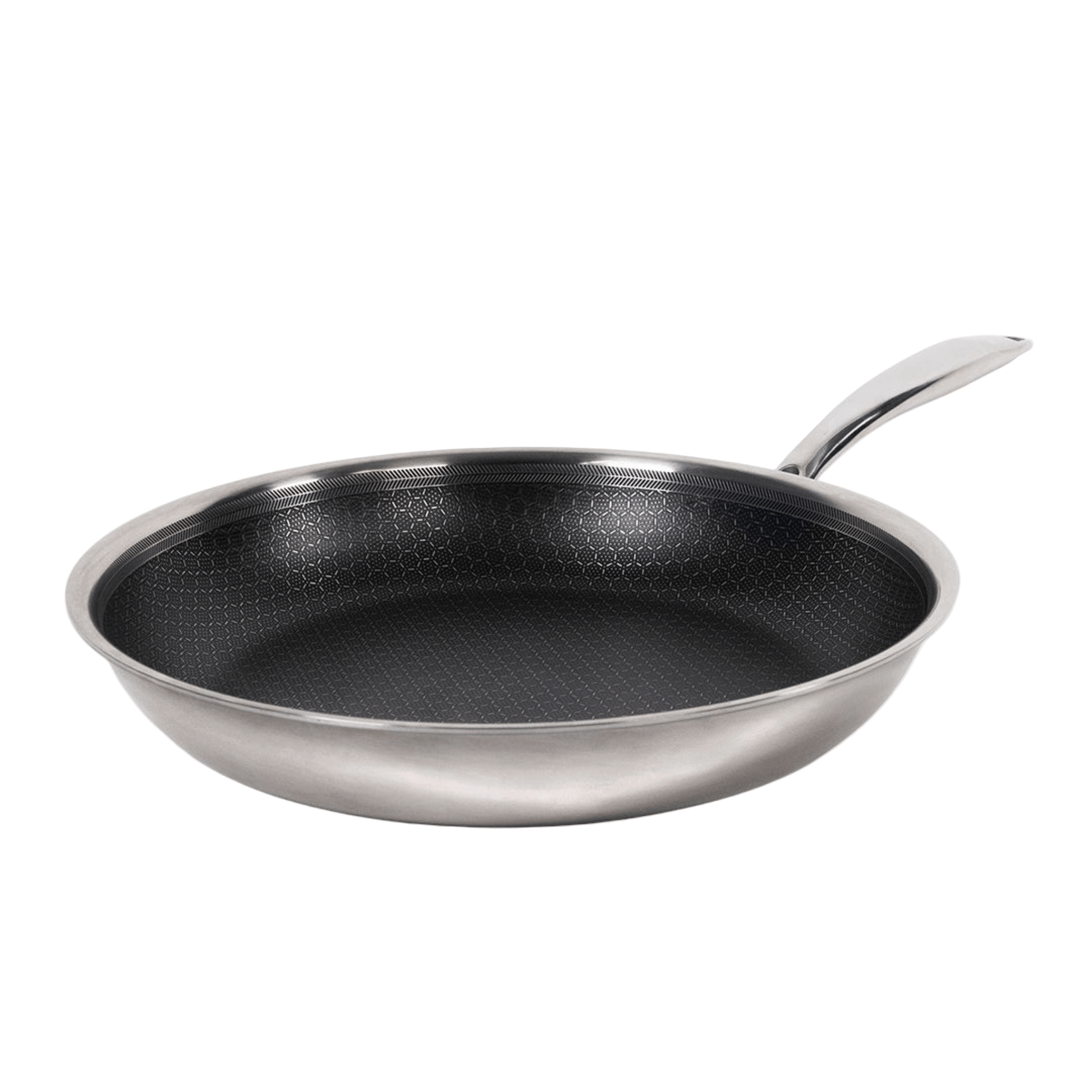 Panden er fremstillet i tre lag stål med en stærk keramisk non-stick belægning. Belægningen er fri for PFAS, ridsefast og tåler metalredskaber – så du kan lave mad med fuld tryghed og uden bekymringer om belægningen.