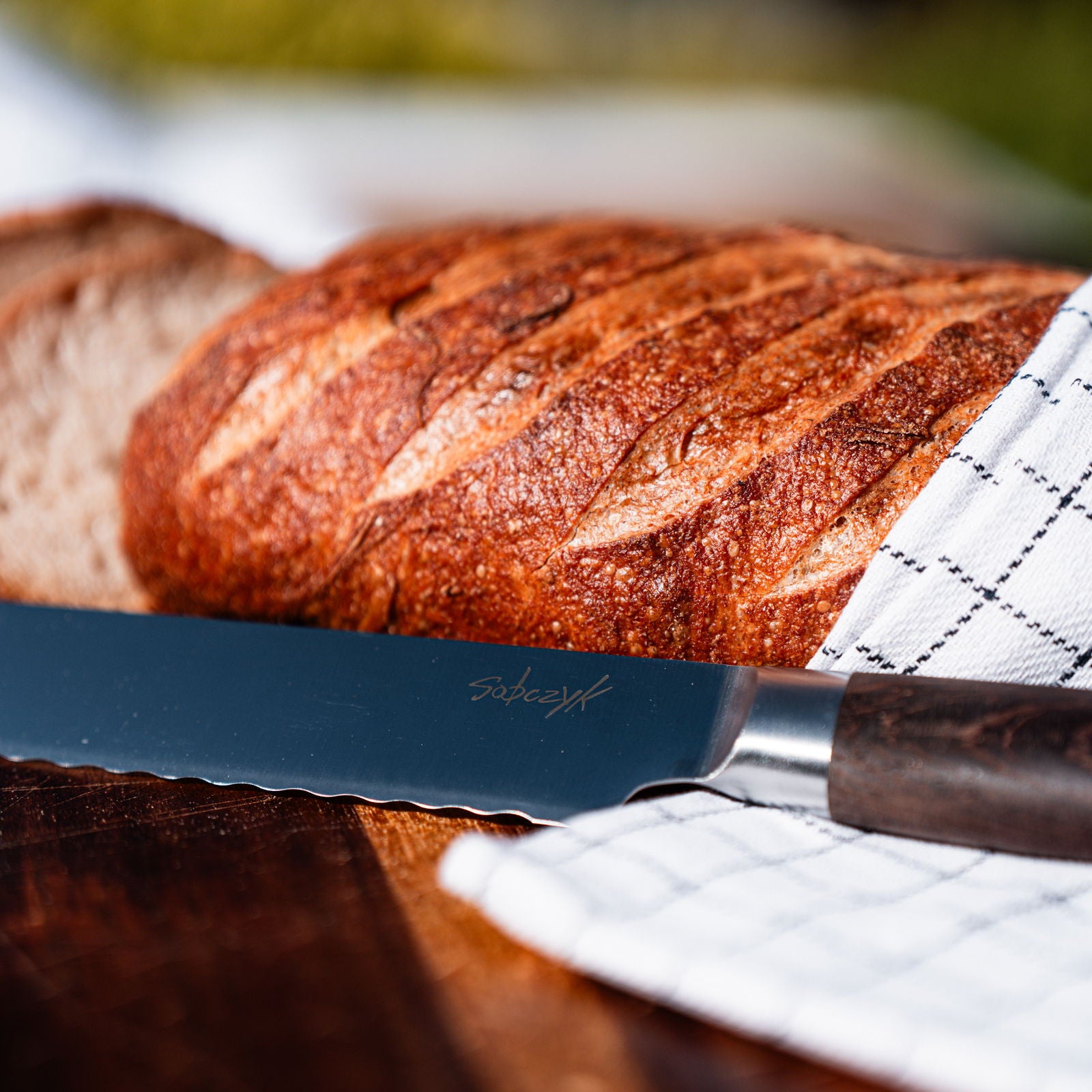 Nordik Brødkniven fra Sobczyk er en solid og stilren hverdagskniv, designet til at levere skarpe snit uden at mase brødet. Med sit 20 cm lange, savtakkede blad i rustfrit stål skærer den ubesværet gennem både sprøde skorper og bløde krummer.