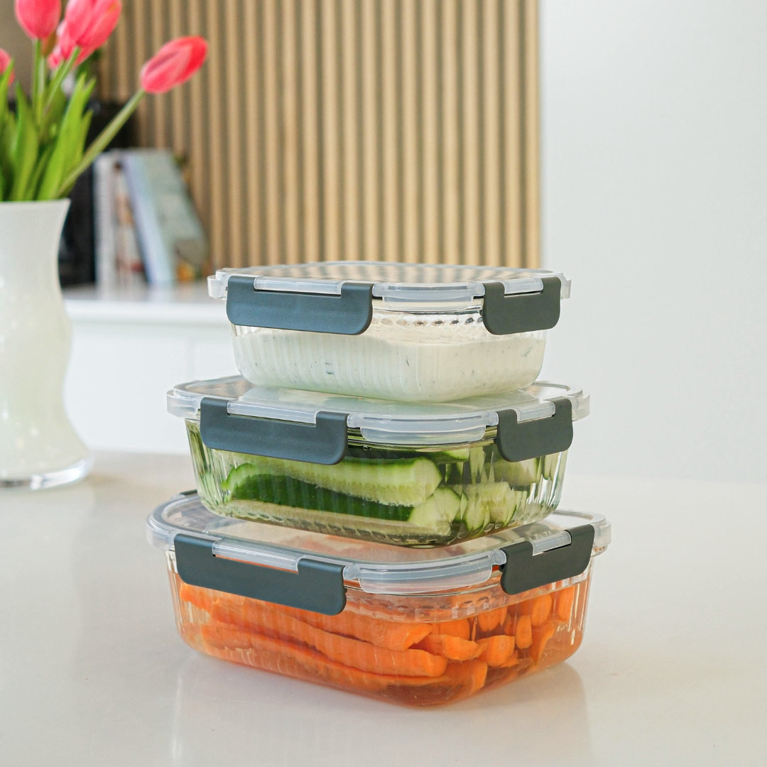 Jeg er stor fan af glas i køkkenet. Du kan se, hvad der er i, det tager ikke smag, og det holder bare bedre i længden. Mit “Opbevaring i glas – 3 stk.” sæt er lavet til dig, der vil have styr på køleskab, madpakker og rester, uden det bliver plastikkaos.