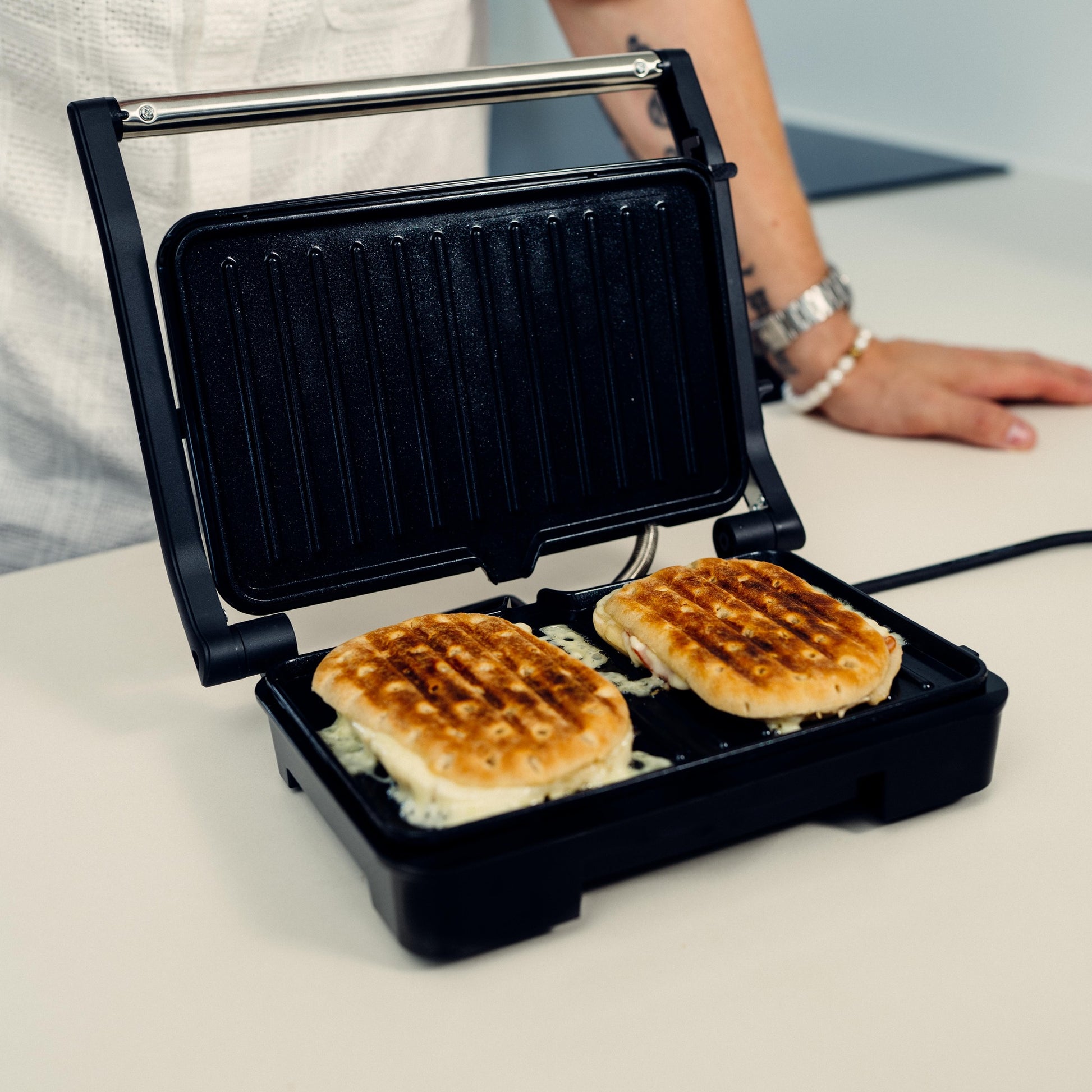 Med Panini Grillen kan du lave meget mere end klassiske panini. Den fordeler varmen fra begge sider, så du får et jævnt og sprødt resultat hver gang, uanset om det er brød, grøntsager eller en hurtig æggekage.