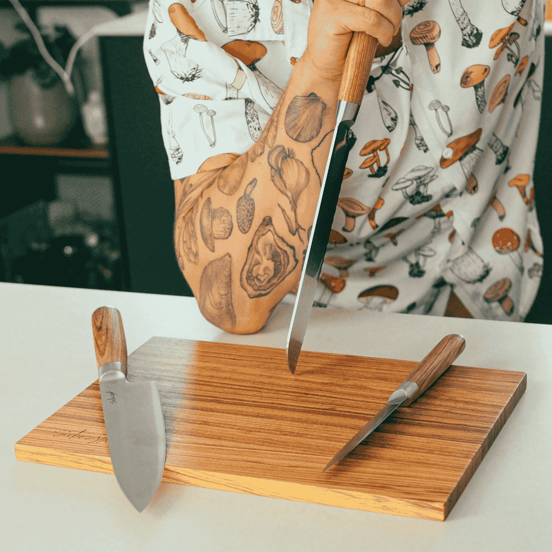 Det medfølgende skærebræt i zebratræ fuldender oplevelsen. Med sit naturlige mønster tilfører det køkkenet et eksklusivt udtryk, samtidig med at det giver en solid og funktionel base til arbejdet. Sobczyk Limited Edition knivsæt er et must-have for køkkenet, hvor kvalitet, design og holdbarhed går hånd i hånd.