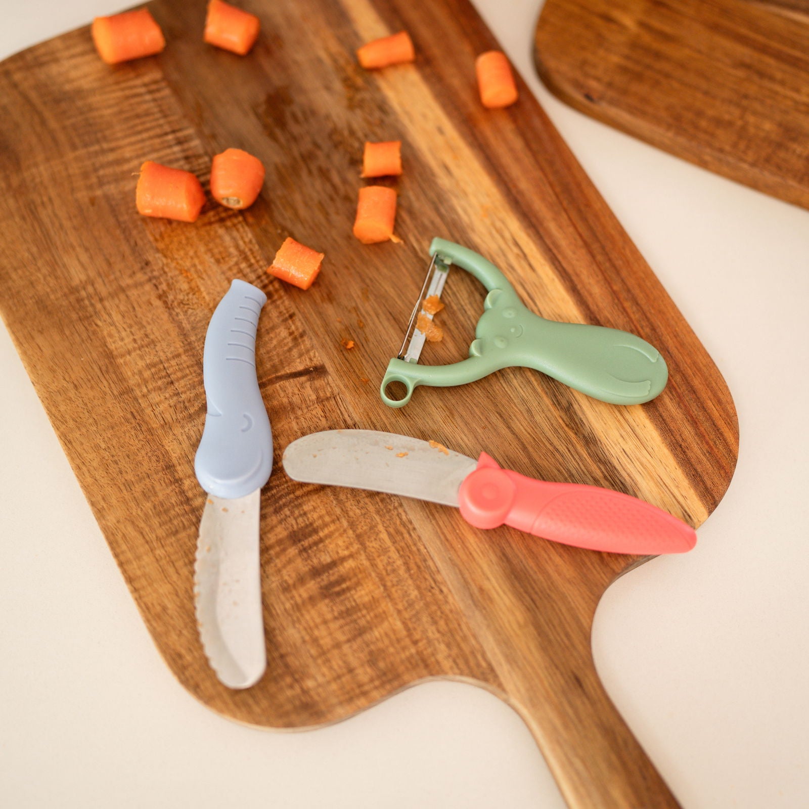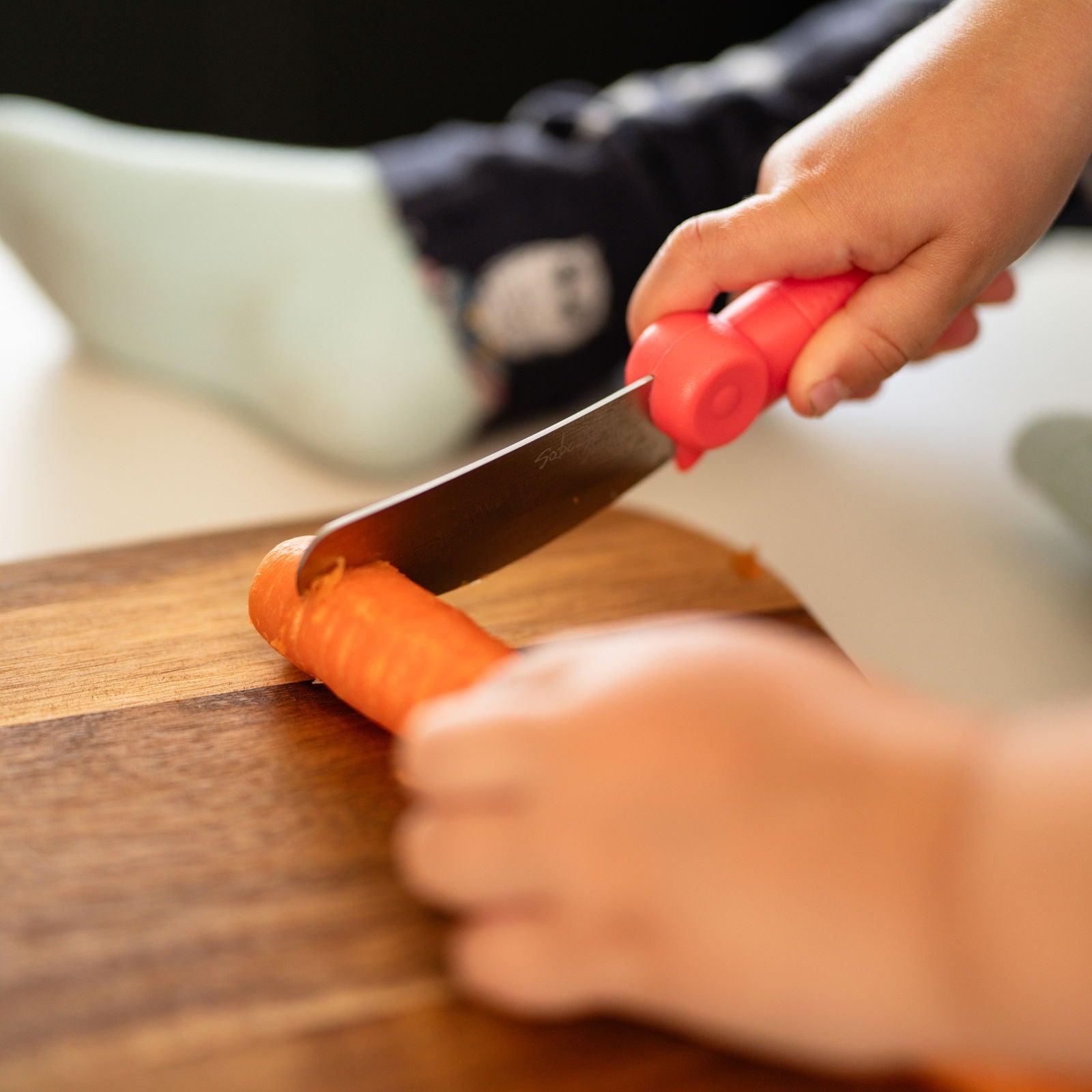 Sikkerhed først: Knivene er udviklet til at minimere risikoen for skader og egner sig bedst til bløde råvarer. Hårdere grøntsager som gulerødder og kartofler bør stadig forberedes af en voksen, så legen i køkkenet forbliver både tryg og sjov.