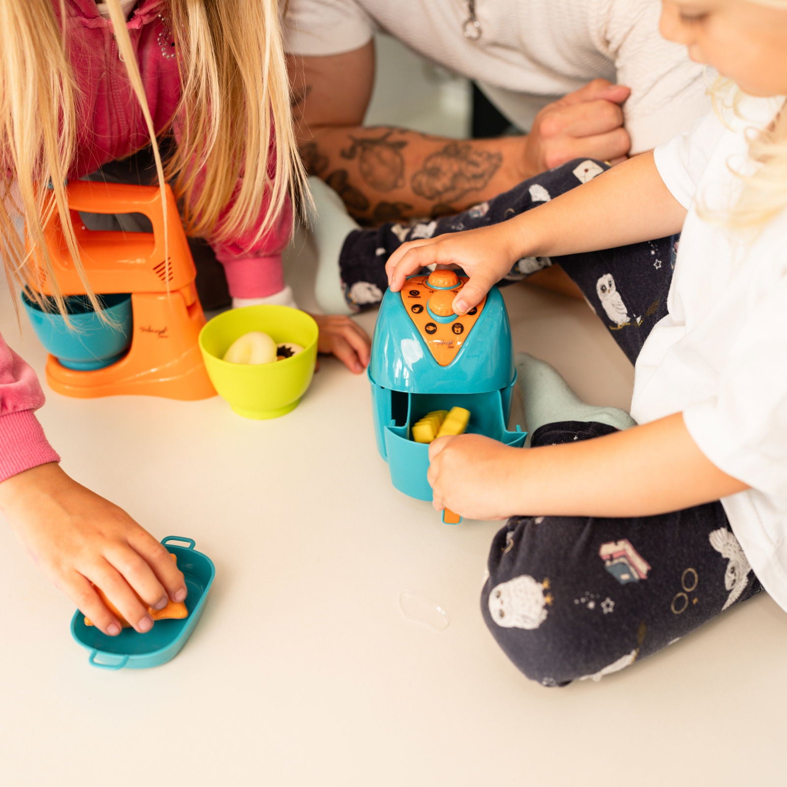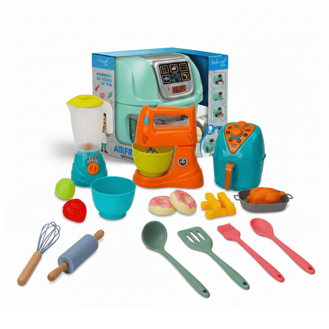 Hver del af sættet er designet med tanke på de små hænder og store drømme. Fra at piske dej og lave smoothies til at friturestege legemad med lys og lyde – alt er skræddersyet til at give en realistisk og tryg oplevelse. Og vigtigst af alt: legen styrker både finmotorik, samarbejde og selvtillid.