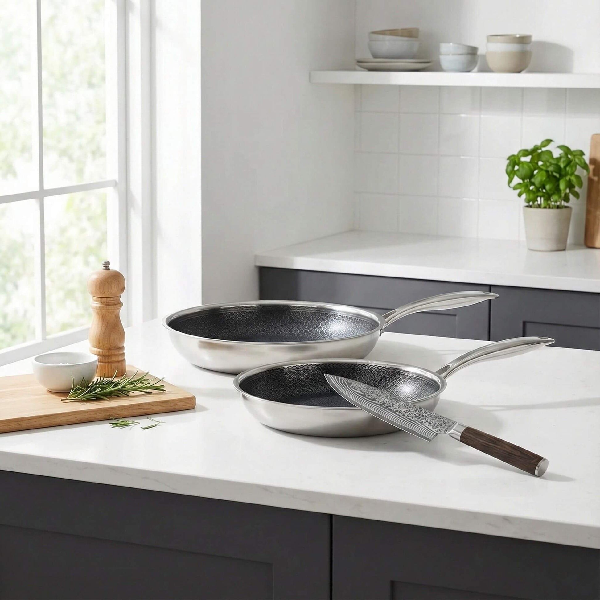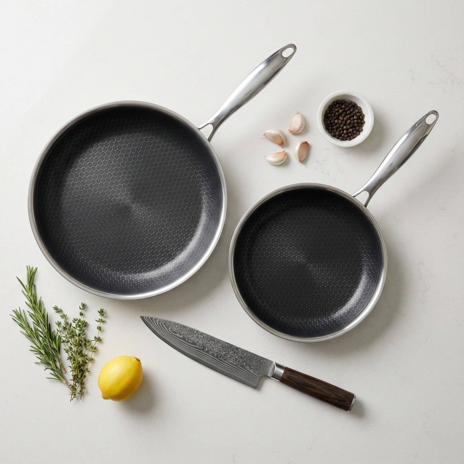 Hybrid Stegepandesæt Ø24 + Ø28 + Damaskus Kokkekniv